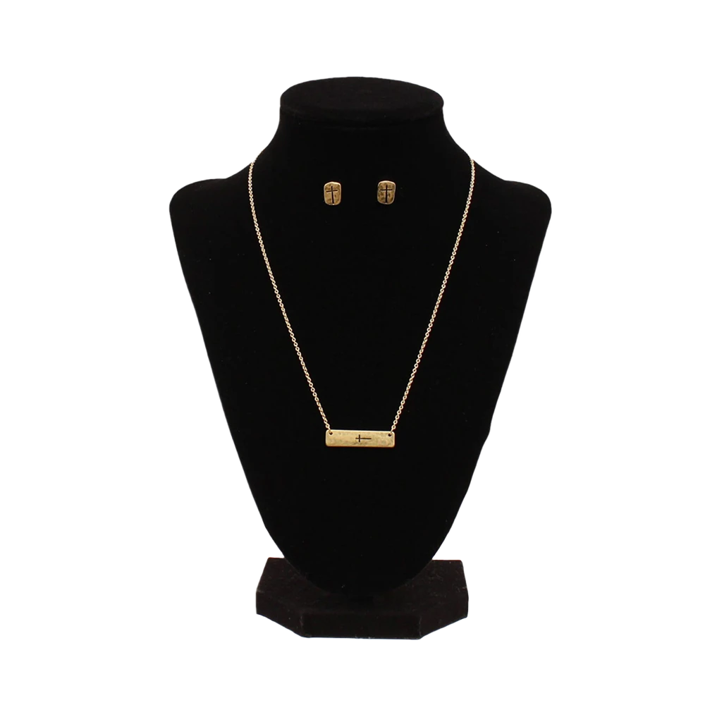Blazin Roxx® Ladies Bar Stamped Cross Gold Chain & Earrings Set 30996