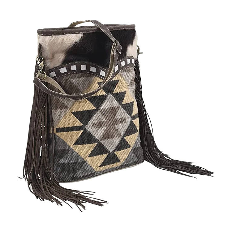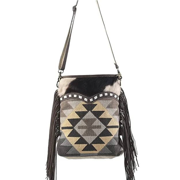 Olay Geometric Rug Woven With Cowhide & Fringe Crossbody Bag LB267